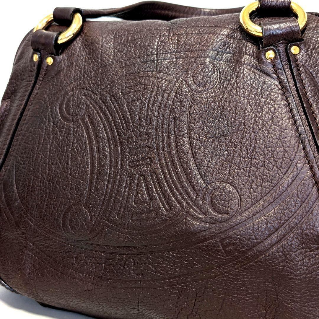 【CELINE セリーヌ】 ハンドバッグ ロゴ 型押し トリオンフ ボストン ダークブラウン