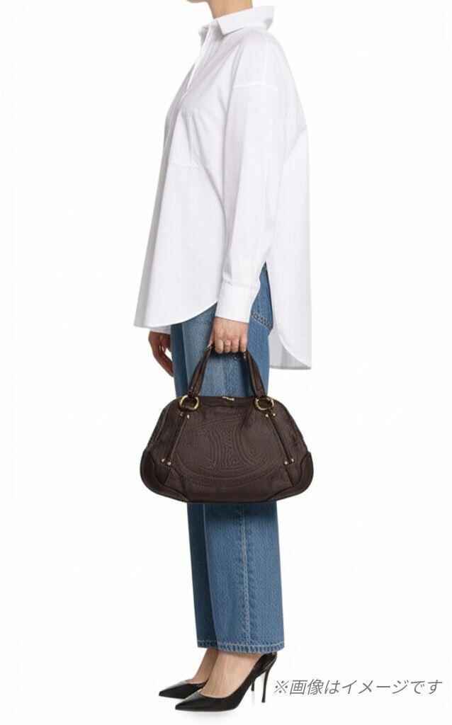 ゴールド金具がエレガントなアクセントとなり、洗練された大人のスタイルを演出。