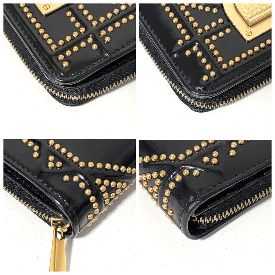 ディオールならではの気品と個性が光る、スタッズ装飾のレアなウォレット。 艶やかなブラックのパテントレザーに、ゴールドのスタッズとエンブレムがラグジュアリーな存在感を放ちます。 コンパクトながら機能性も備えており、洗練されたデザインは持つだけでスタイルを格上げ。 こちらは入手困難な希少モデルのため、人と被らない、特別なディオールをお探しの方におすすめの一点です。
