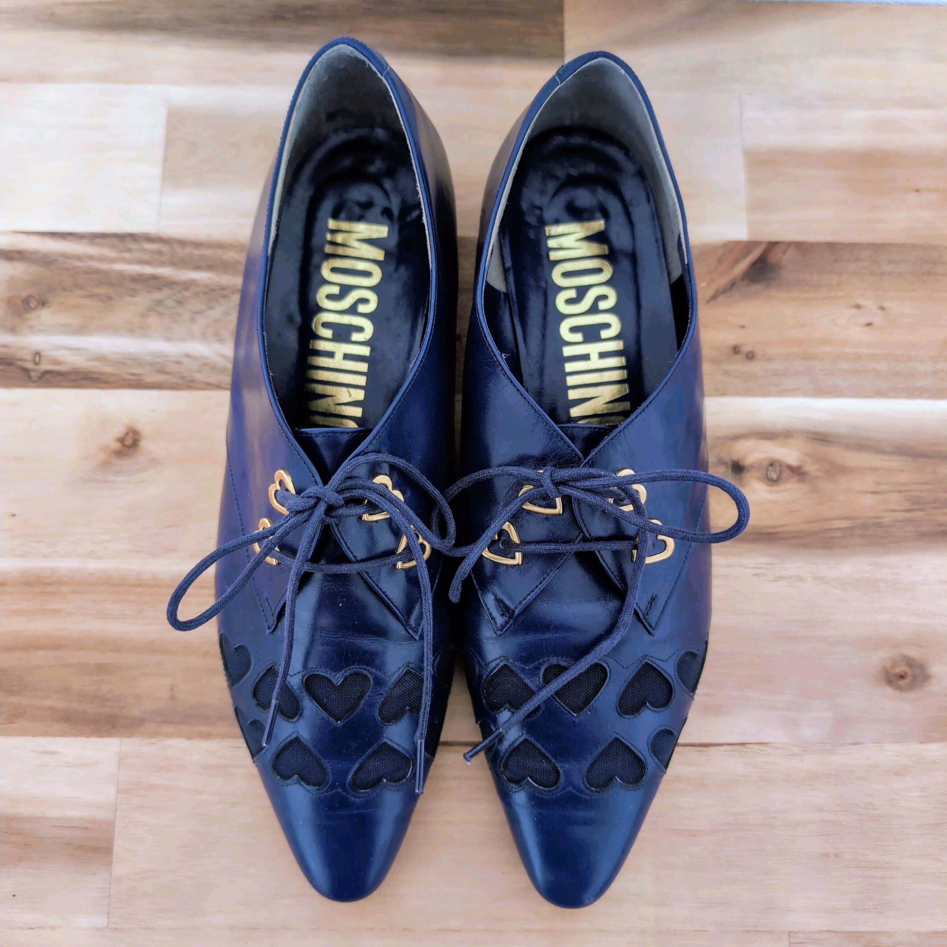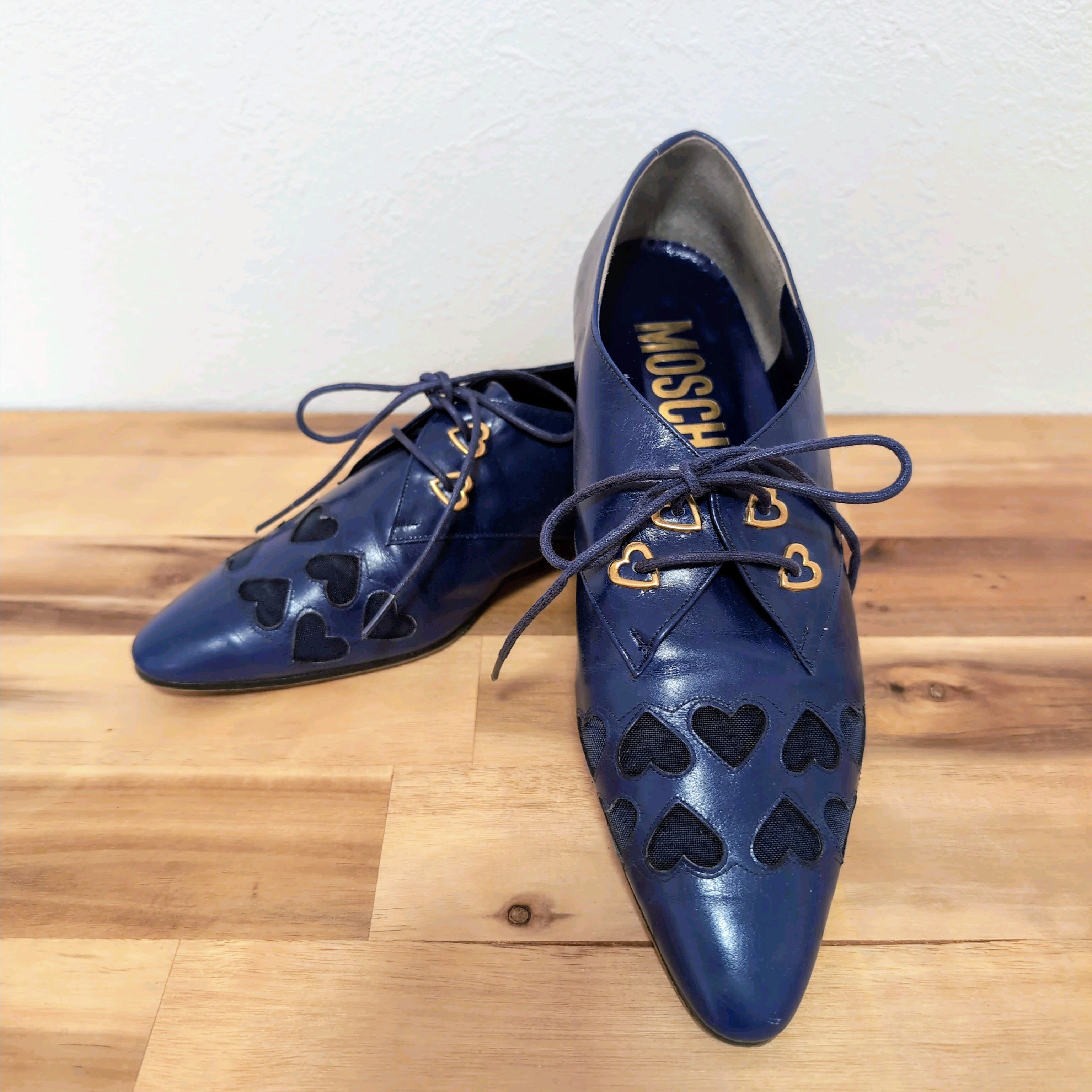 【MOSCHINO モスキーノ】 レザー ハート レースアップシューズ ポインテッドトゥ