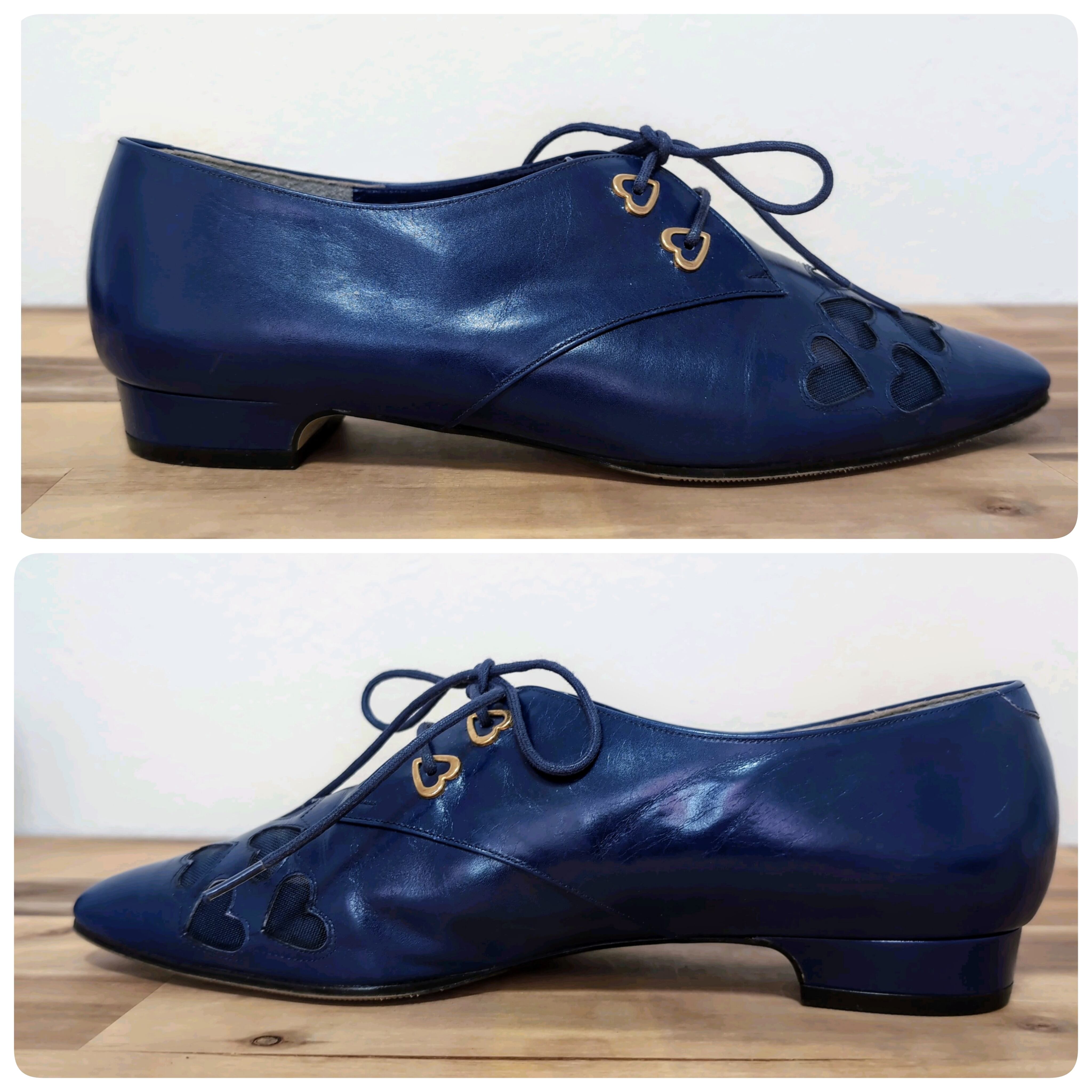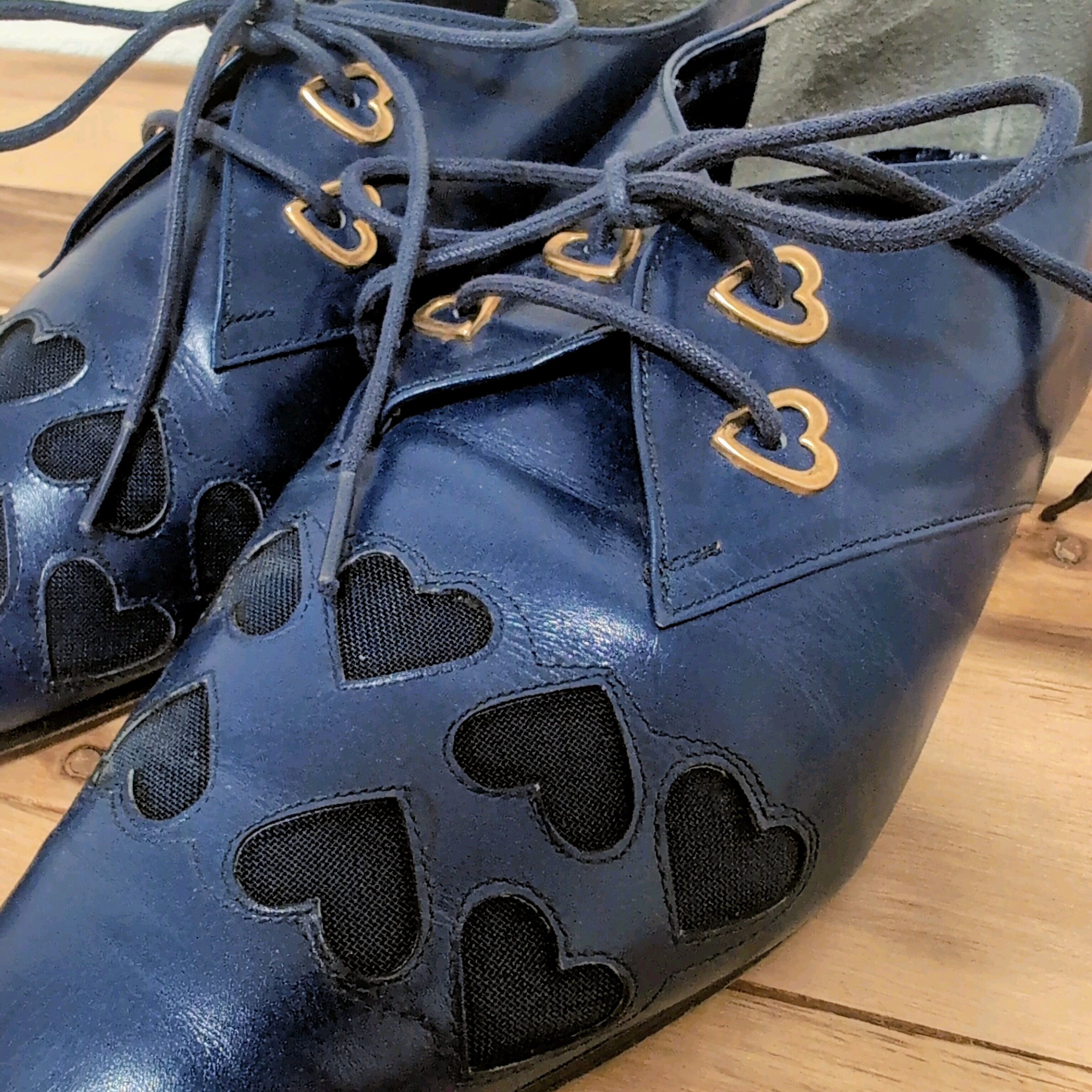 【商品名】ハート カットワーク レースアップ ポインテッドトゥ レザー ヴィンテージ ゴールドロゴ オックスフォード パンプス シューズ