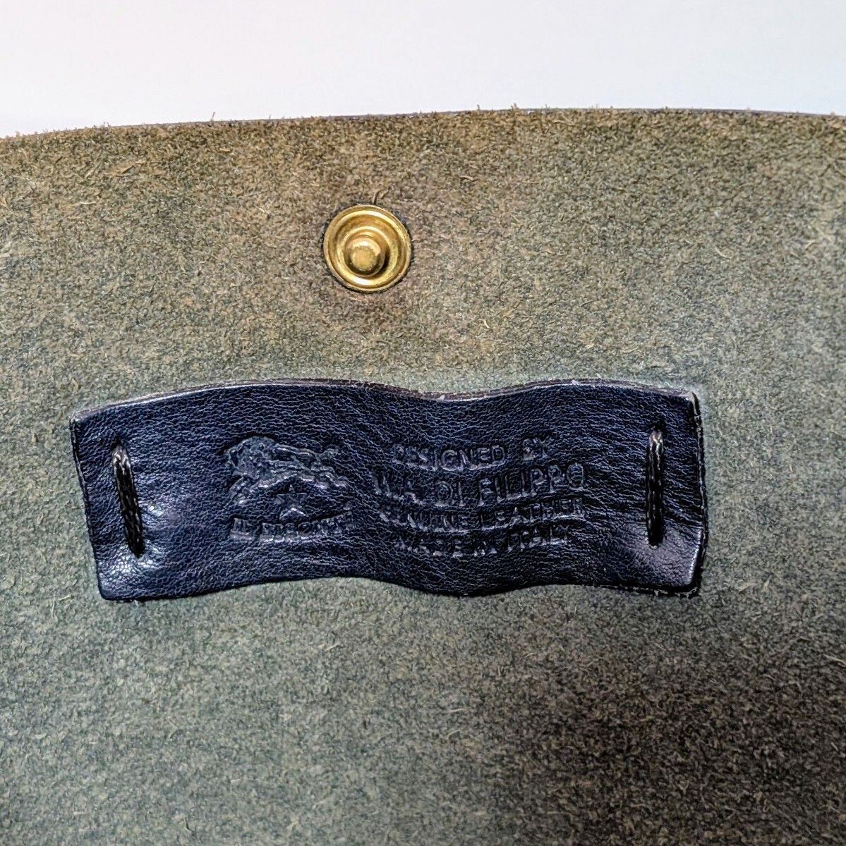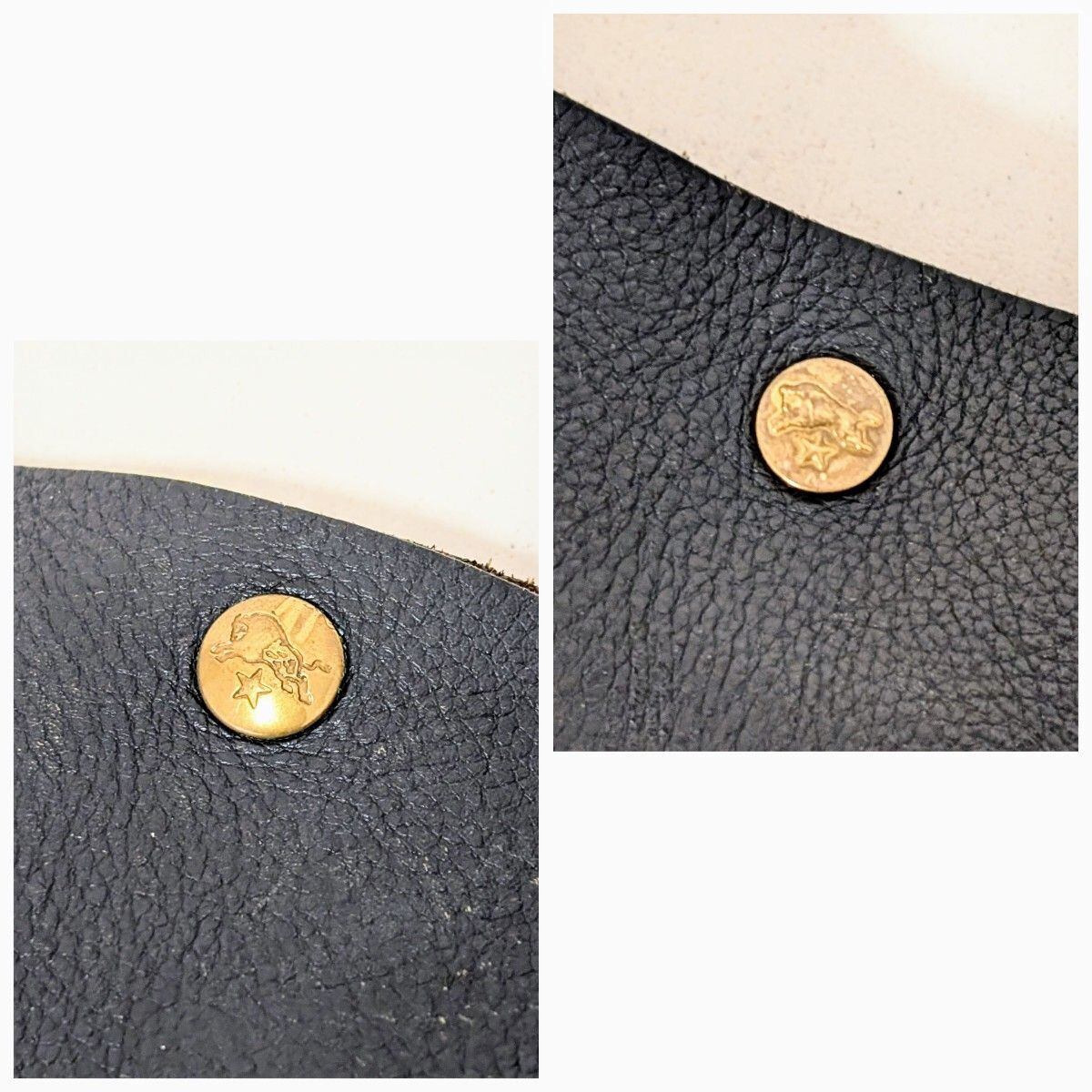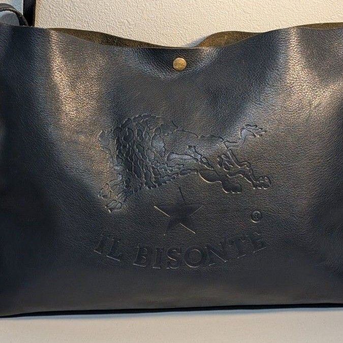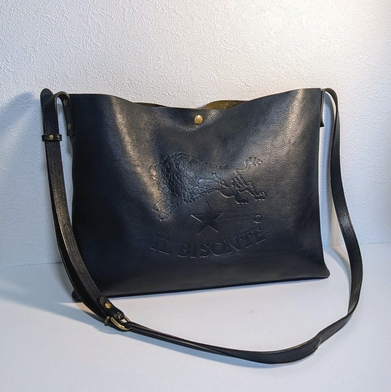【IL BISONTE イルビゾンテ】レザー ショルダーバッグ 本革 ビッグロゴ 型押し エンボス 金ボタン A4 ダークネイビー