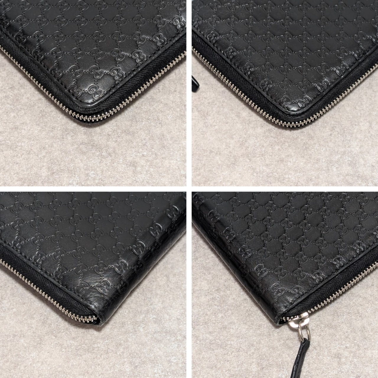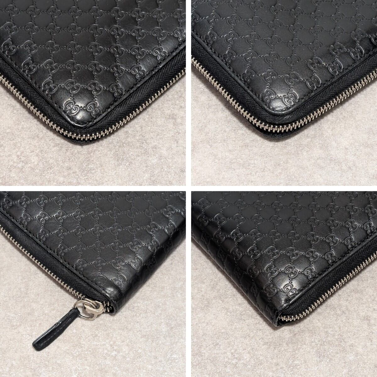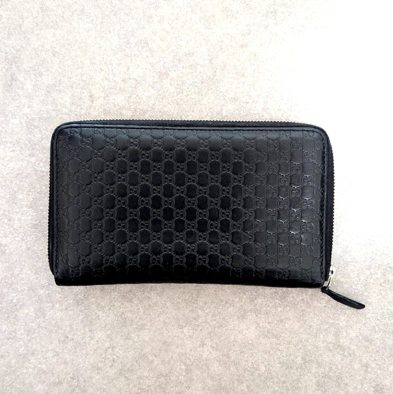【GUCCI グッチ】 GG マイクロシマ シマレザー 長財布 マルチケース ラウンドファスナー ブラック