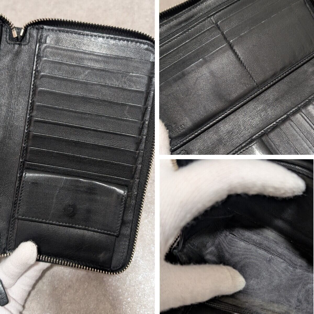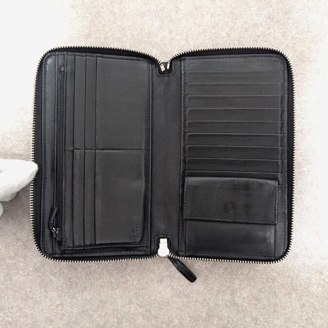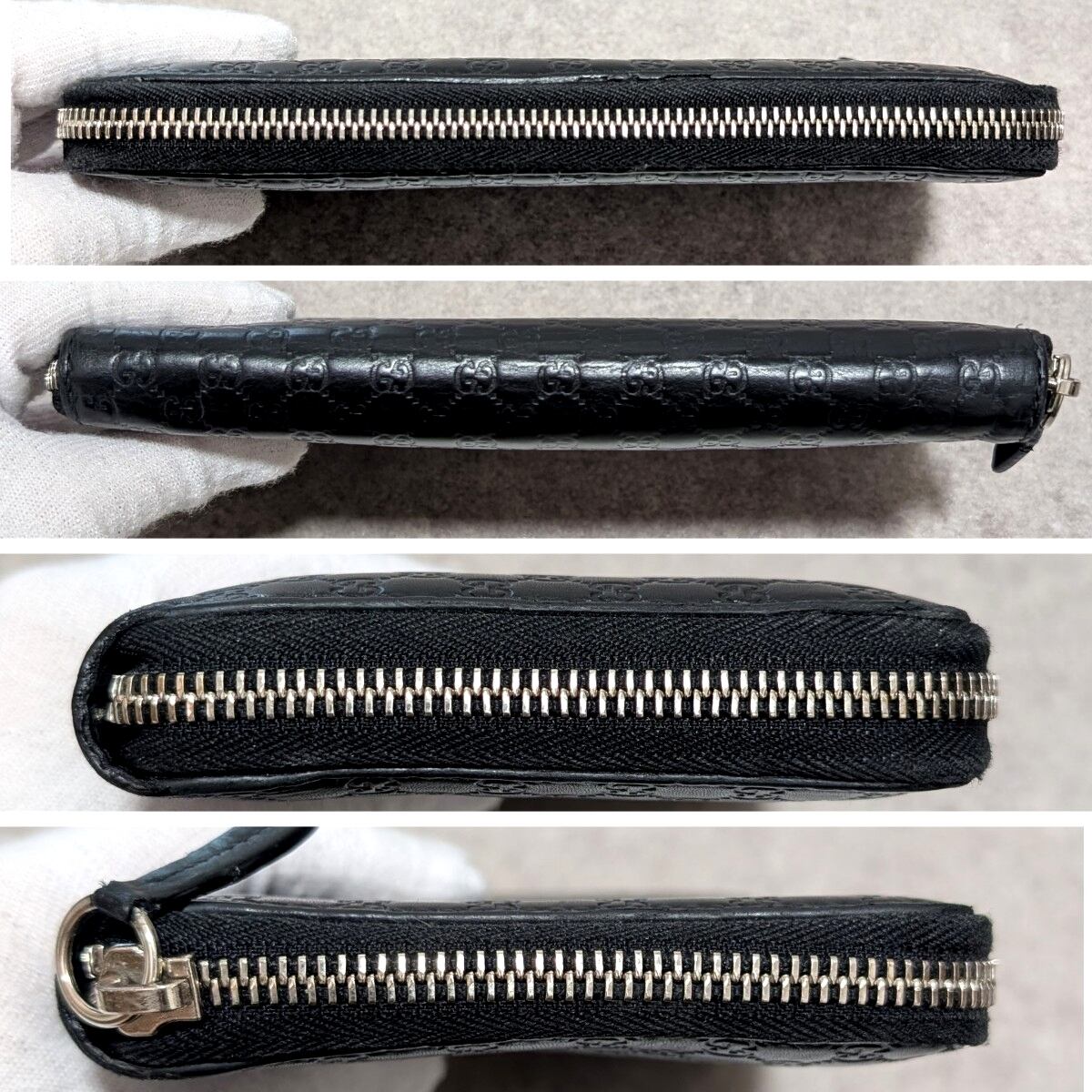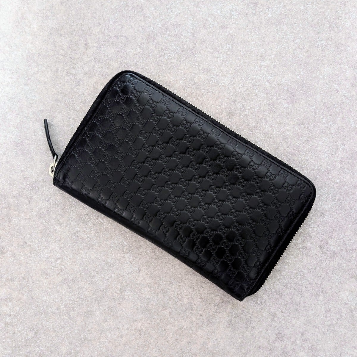 【GUCCI グッチ】 GG マイクロシマ シマレザー 長財布 マルチケース ラウンドファスナー ブラック