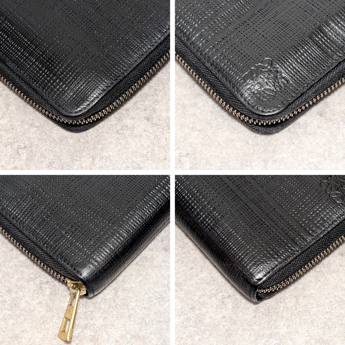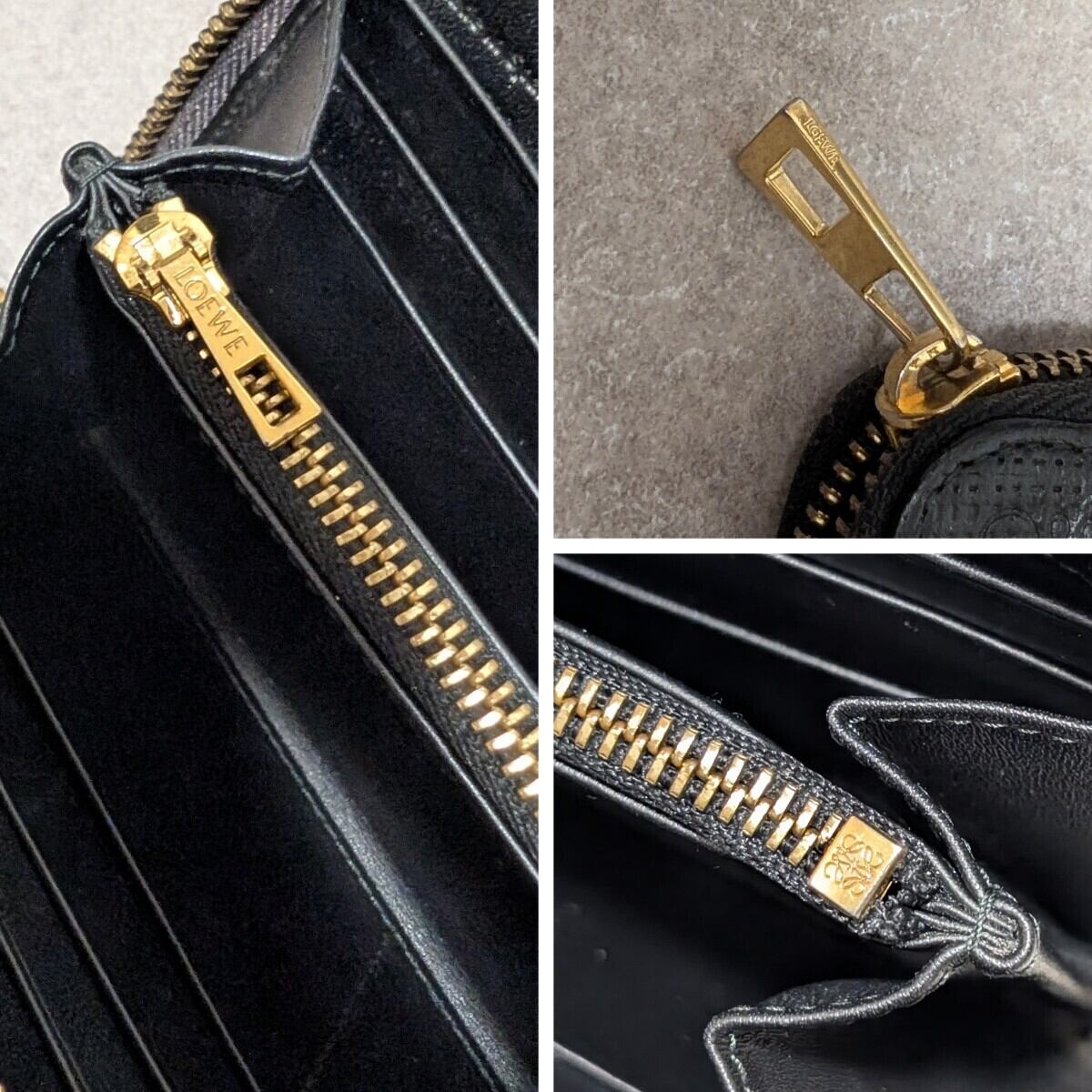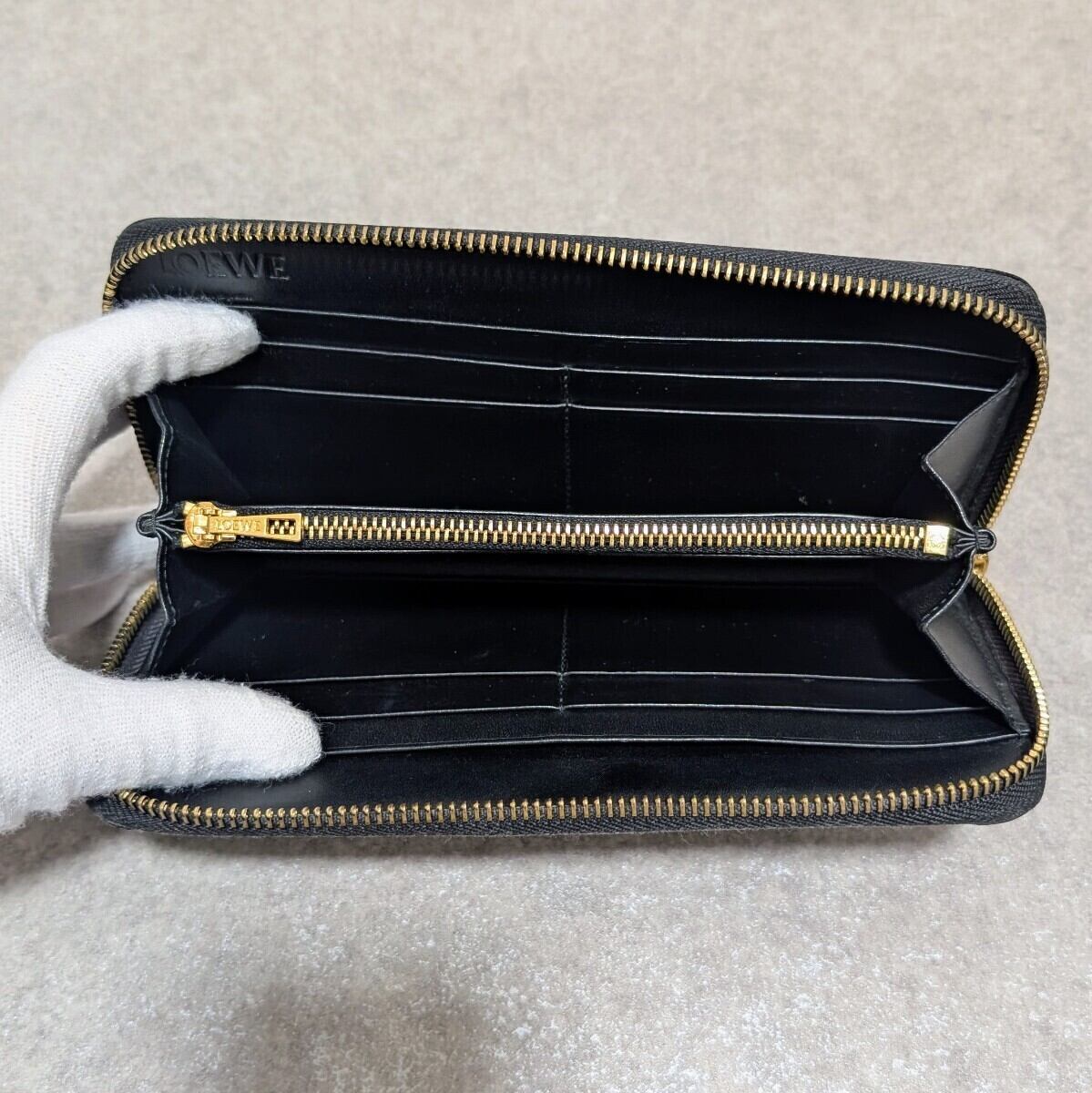 【LOEWE ロエベ】 リネン 長財布 ロングウォレット ラウンドファスナー ラウンドジップ アナグラム ロゴ 型押し ブラック