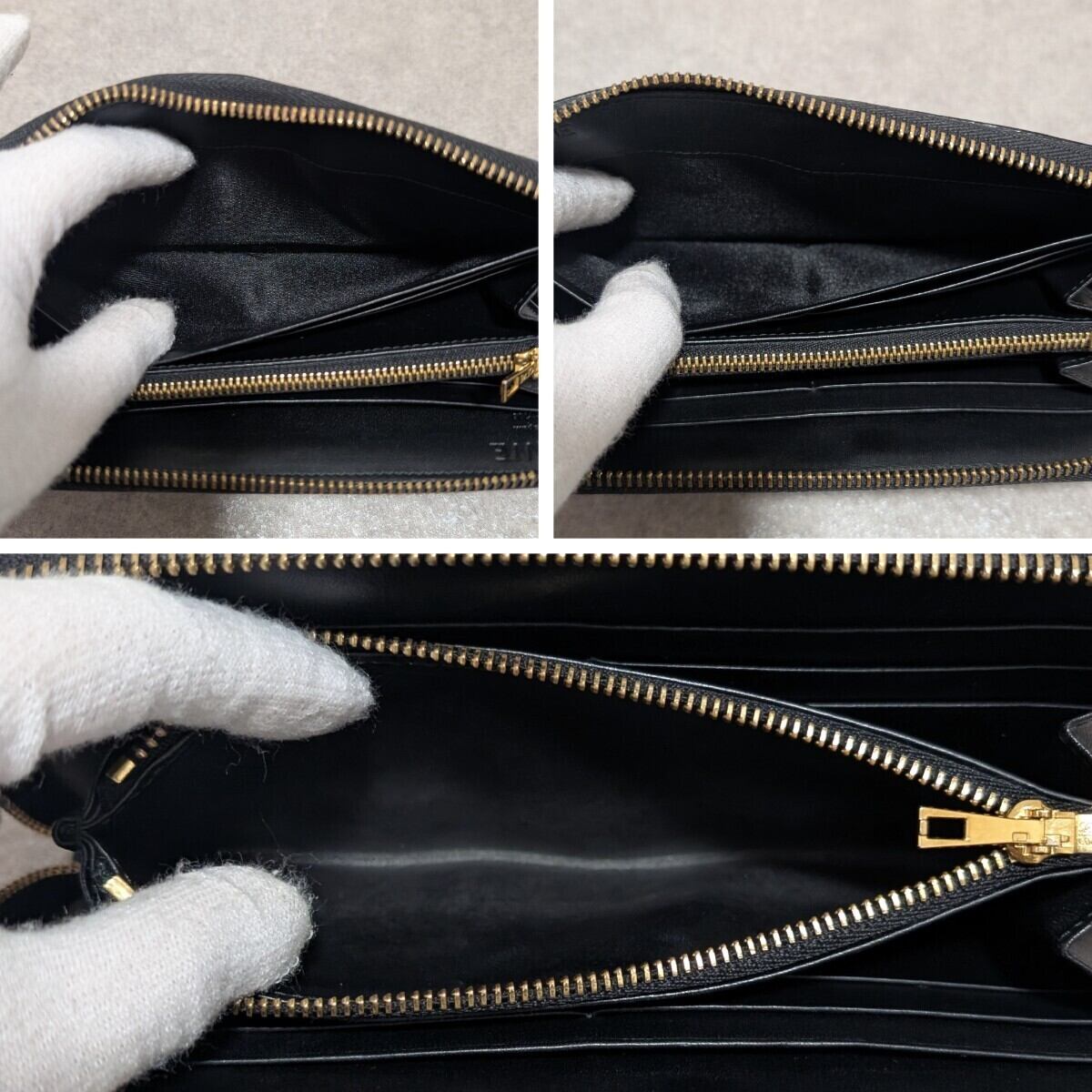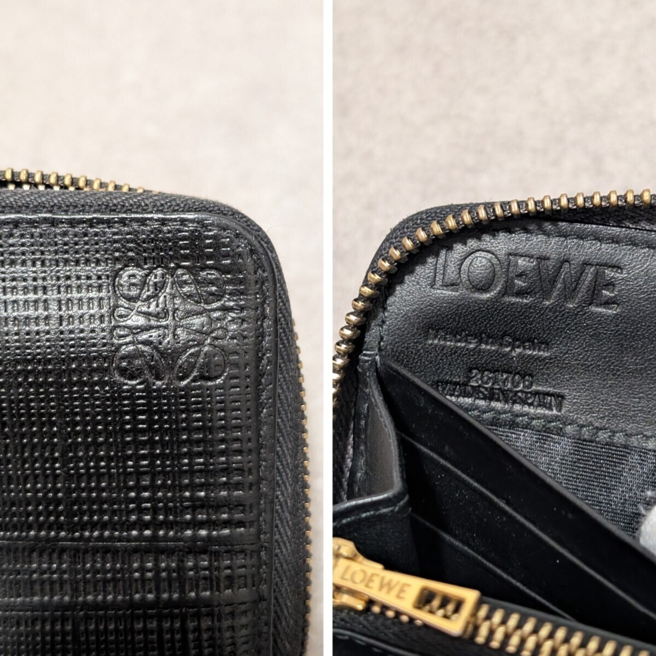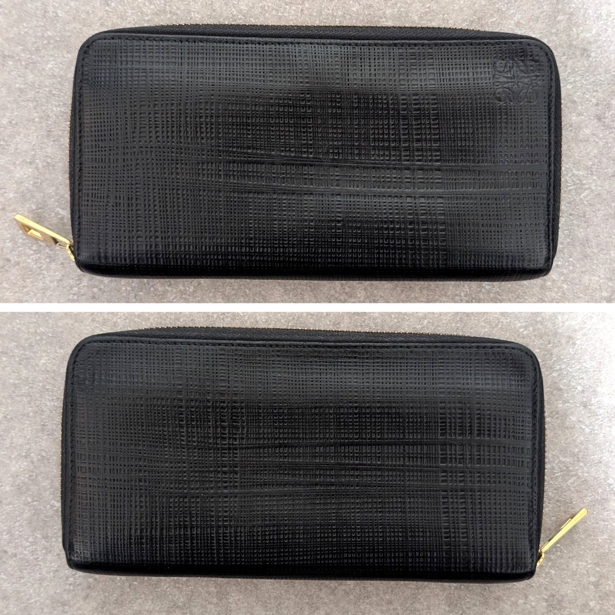 【LOEWE ロエベ】 リネン 長財布 ロングウォレット ラウンドファスナー ラウンドジップ アナグラム ロゴ 型押し ブラック