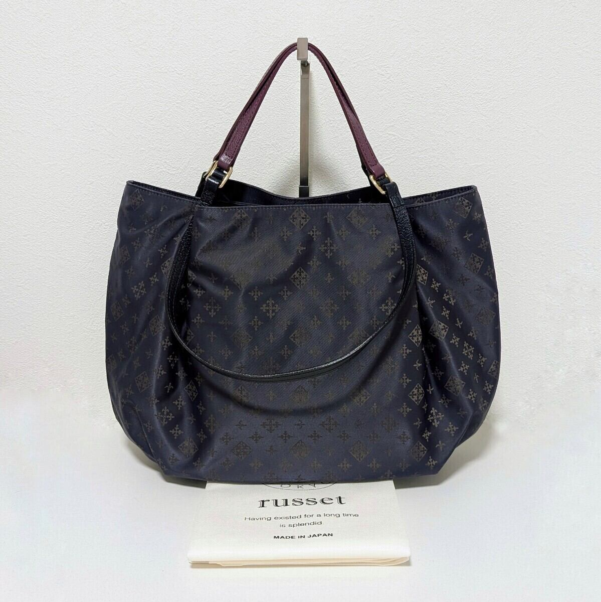 【RUSSET ラシット】 2WAY ハンドル トートバッグ ショルダーバッグ ハンドバッグ パープルブラウン ネイビー マグネット 大容量